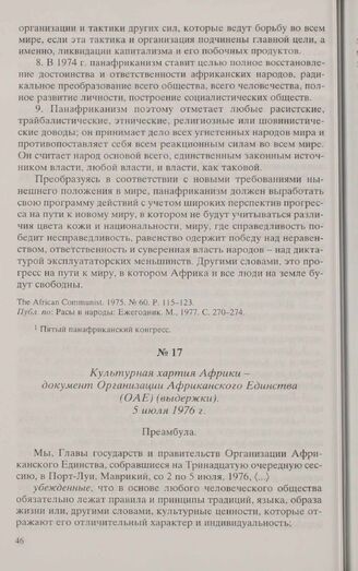 Культурная хартия Африки - документ Организации Африканского Единства (ОАЕ) (выдержки). 5 июля 1976 г. // http://www.africa-union.org/Ofricial_documents/Treaties.../Cultural_Charter_for_Africa.pdf.