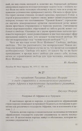 Экс-президент Танзании Джулиус Ньерере о спаде социального и экономического развития стран Африки и перспективах дальнейшего развития. 1987 г. // «El-Moudjahid». Алжир, 1987. Публ. по: «За рубежом». 1988. № 8. С. 10, 11.