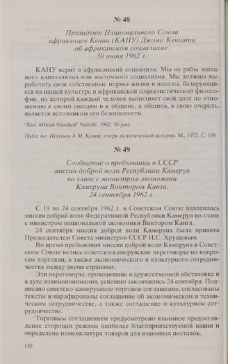 Президент Национального Союза африканцев Кении (КАНУ) Джомо Кениата об африканском социализме. 30 июня 1962 г. // «East African Standard». Nairobi. 1962. 30 june. Публ. по: Пегушев A.M. Кения: очерк политической истории. М., 1972. С. 158.