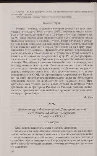Конституция Федеративной Демократической Республики Эфиопия (выдержки). 21 августа 1995 г. // The Constitution of the Federal Democratic Republic of Ethiopia. Federal Negarit Gazeta of the Federal Democratic Republic of Ethiopia. Addias Abeba, 1995. 21 august. P. 3-72.