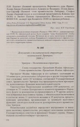 Документ о политической структуре независимой Эритреи. 2000 г. // http://home.planet.nl/-hans.mebrat/aritrea-govemment.htm.Р. 1-2.