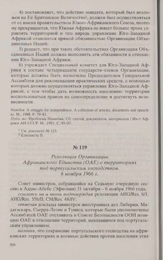 Резолюция Организации Африканского Единства (ОАЕ) о территориях под португальским господством. 6 ноября 1966 г. // Организация Африканского Единства (история создания и деятельности). Сб. документов / Ин-т Африки АН СССР. М., 1970. С. 169, 170.