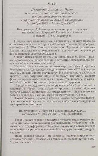 Президент Анголы А. Нето о задачах социально-экономического и политического развития Народной Республики Ангола (выдержки). 11 ноября 1975-11 ноября 1976 гг. // Neto Antonio Agostinho. Tudo pelo Povo, tudo pela Independencia, tudo pelo Socialismo. Luanda, 1979. P. 114-116.