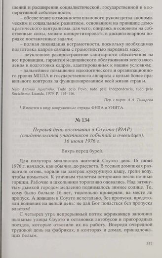 Первый день восстания в Соуэто (ЮАР) (свидетельства участников событий и очевидцев). 16 июня 1976 г. // Брукс Алан, Брикхил Джереми. Вихрь пред бурей. М., 1984. С. 14-22.