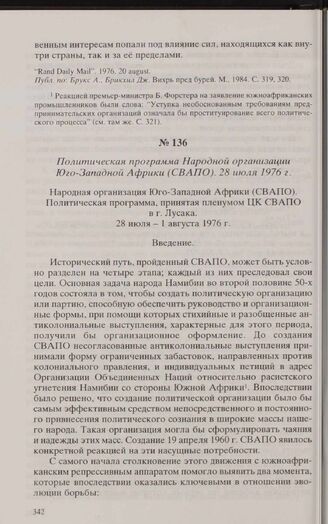 Политическая программа Народной организации Юго-Западной Африки (СВАПО). 28 июля 1976 г. // Constitution and Political Programme of the South-West Africa people’s organization. S.D., S.L., 1976. P. 44-46. Публ. по: Проблема Намибии // Сб. статей, документов, материалов / Ин-т Африки АН СССР. М., 1991. С 56-58.