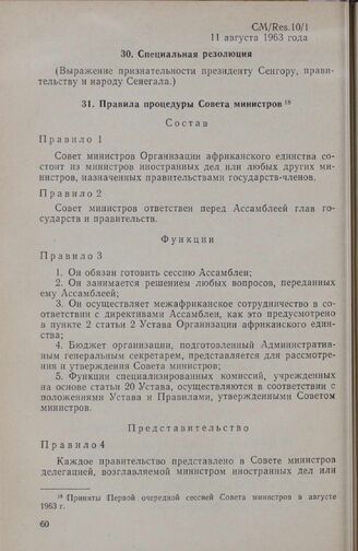 Первая очередная сессия Совета министров. CM/Res.10/I. Специальная ...