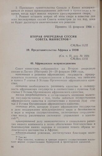Вторая очередная сессия Совета министров. CM/Res.11/II. Представительство Африки в ООН. Лагос, 24-29 февраля 1964 г. // «OAU, Basic Documents and Resolutions Provisional Secretariat», Addis Ababa, 1964.