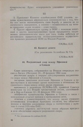 Вторая очередная сессия Совета министров. CM/Res.15/II. Комитет девяти. Лагос, 24-29 февраля 1964 г. // «OAU, Basic Documents and Resolutions Provisional Secretariat», Addis Ababa, 1964.