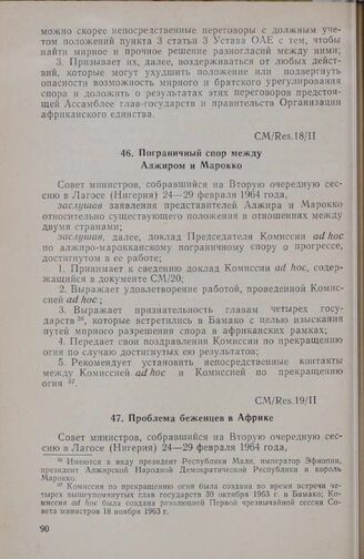 Вторая очередная сессия Совета министров. CM/Res.18/II. Пограничный спор между Алжиром и Марокко. Лагос, 24-29 февраля 1964 г. // «OAU, Basic Documents and Resolutions Provisional Secretariat», Addis Ababa, 1964.