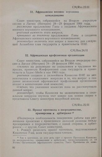Вторая очередная сессия Совета министров. CM/Res.25/II. Проект Протокола о посредничестве, примирении и арбитраже. Лагос, 24-29 февраля 1964 г. // «OAU, Basic Documents and Resolutions Provisional Secretariat», Addis Ababa, 1964.
