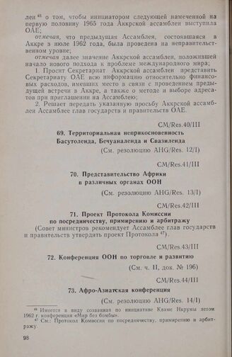 Третья очередная сессия Совета министров. CM/Res.42/III. Проект Протокола Комиссии по посредничеству, примирению и арбитражу. Каир, 13-17 июля 1964 г. // «OAU, Resolutions and Recommendations of the First Session of the Assembly of Heads of State and Government and Third Session of the Council of Ministers, Provisional Secretariat», Addis Ababa, 1964.