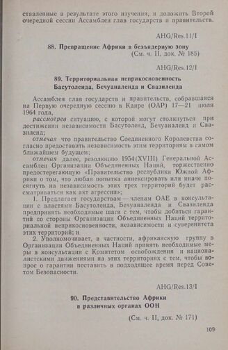 Первая очередная сессия Ассамблеи глав государств и правительств. AHG/Res. 11/I. Превращение Африки в безъядерную зону. Каир, 17-21 июля 1964 г. // «OAU, Resolutions and Recommendations of the First Session of the Assembly of Heads of State and Government and Third Session of the Council of Ministers, Provisional Secretariat», Addis Ababa, 1964.