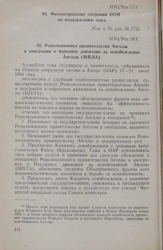 Первая очередная сессия Ассамблеи глав государств и правительств. AHG/Res.17/I. Финансирование операций ООН по поддержанию мира. Каир, 17-21 июля 1964 г. // «OAU, Resolutions and Recommendations of the First Session of the Assembly of Heads of State and Government and Third Session of the Council of Ministers, Provisional Secretariat», Addis Ababa, 1964.