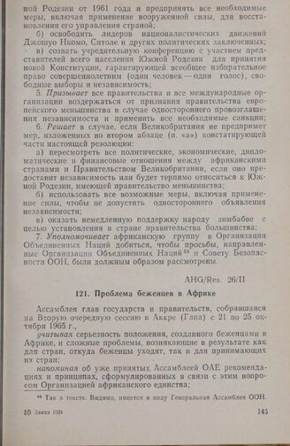 Вторая очередная сессия Ассамблеи глав государств и правительств. AHG/Res. 26/II. Проблема беженцев в Африке. Аккра, 21-25 октября 1965 г. // «OAU, Secretariat», Addis Ababa, 1965.