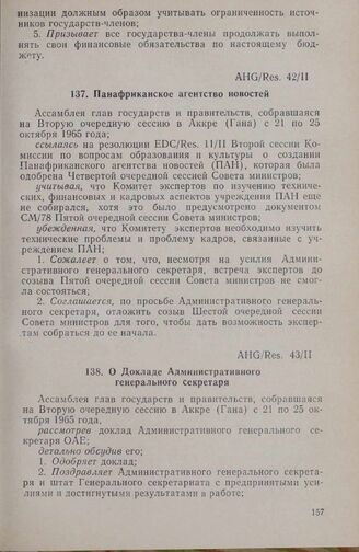 Вторая очередная сессия Ассамблеи глав государств и правительств. AHG/Res. 42/II. Панафриканское агентство новостей. Аккра, 21-25 октября 1965 г. // «OAU, Secretariat», Addis Ababa, 1965.