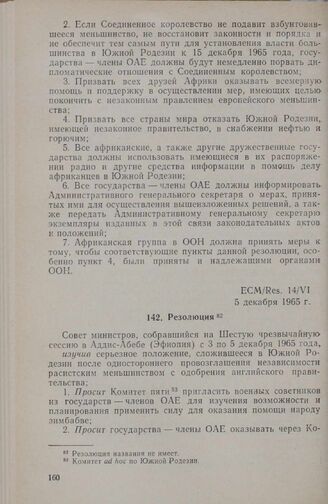 Шестая чрезвычайная сессия Совета министров. ECM/Res. 14/VI. Резолюция. Аддис-Абеба, 3-5 декабря 1965 г. // «OAU, Secretariat», Addis Ababa, 1965.