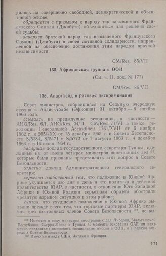 Седьмая очередная сессия Совета министров. CM/Res. 85/VII. Африканская группа в ООН. Аддис-Абеба. 31 октября-6 ноября 1966 г.