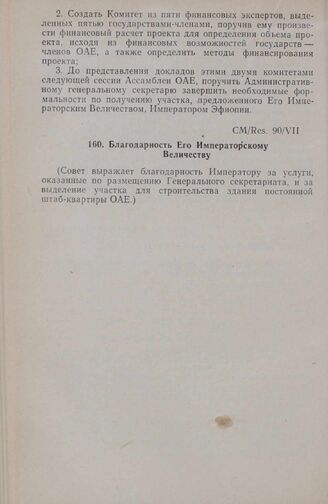Седьмая очередная сессия Совета министров. CM/Res. 90/VII. Благодарность Его Императорскому Величеству. Аддис-Абеба. 31 октября-6 ноября 1966 г.