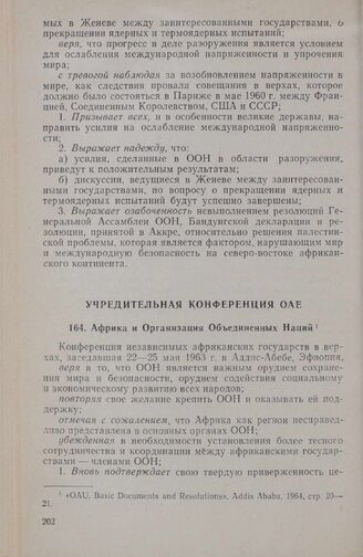 Учредительная конференция ОАЕ. Африка и Организация Объединенных Наций. Аддис-Абеба, 22-25 мая 1963 г. // «OAU, Basic Documents and Resolutions», Addis Ababa, 1964, стр. 20-21.