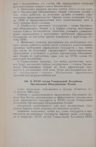 Первая очередная сессия Совета министров ОАЕ. О XVIII сессии Генеральной Ассамблеи Организации Объединенных Наций. Дакар. 2-11 августа 1963 г.