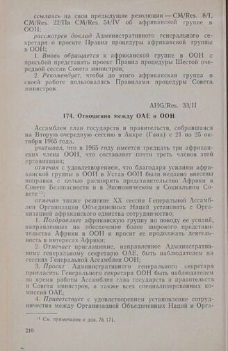 Вторая очередная сессия Ассамблеи ОАЕ. AHG/Res. ЗЗ/ІІ. Отношения между ОАЕ и ООН. Аккра, 21-26 октября 1965 г.