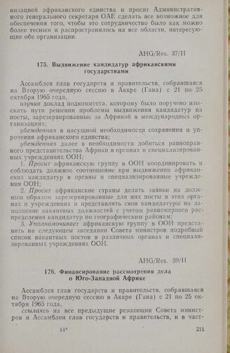 Вторая очередная сессия Ассамблеи ОАЕ. AHG/Res. 37/II. Выдвижение кандидатур африканскими государствами. Аккра, 21-26 октября 1965 г.