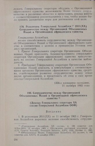 Сотрудничество между Организацией Объединенных Наций и Организацией африканского единства. (Доклад Генерального секретаря XX сессии Генеральной Ассамблеи ООН). 16 декабря 1965 г.