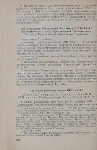 Резолюция Генеральной Ассамблеи 2193(ХХІ). Сотрудничество между Организацией Объединенных Наций и Организацией африканского единства. 19 декабря 1966 г. //«Генеральная Ассамблея, XXI сессия», п. 22, A/Res.2193, 19 декабря 1966 г.