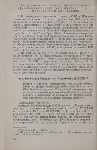 Генеральная Ассамблея, XXI сессия», п. 66 и 68 повестки дня, A/Res./2235, 10 января 1967 г.