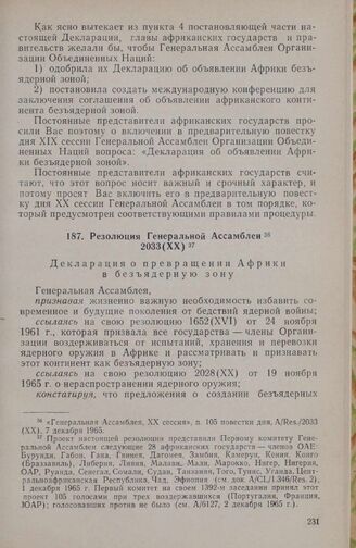 Генеральная Ассамблея, XX сессия, п. 105 повестки дня, A/Res./2033 (XX), 7 декабря 1965.