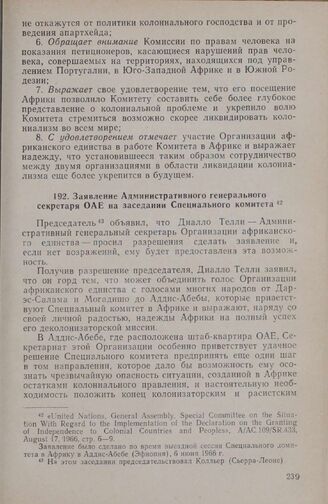 Специальный комитет по вопросу о ходе осуществления Декларации и предоставлении независимости колониальным странам и народам. Заявление Административного генерального секретаря ОАЕ на заседании Специального комитета. 17 августа 1966 г. // «United Nations, General Assembly, Special Committee on the Situation With Regard to the Implementation of the Declaration on the Granting of Independence to Colonial Countries and Peoples», A/AC.109/SR.433, August 17, 1966, стр. 6-9.