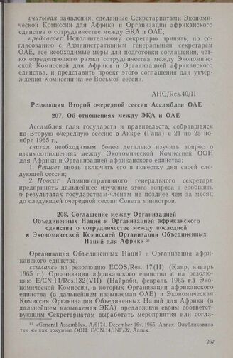Экономическая Комиссия ООН для Африки (ЭКА). Резолюция Второй очередной сессии Ассамблеи ОАЕ. Об отношениях между ЭКА и ОАЕ. AHG/Res.40/II. Аккра, 21-25 ноября 1965 г.