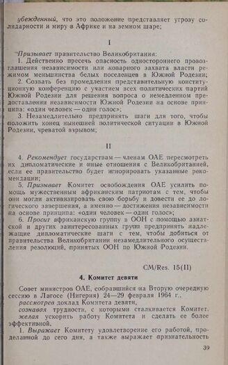 Вторая очередная сессия Совета министров. CM/Res. 15(II). Комитет девяти Лагос, 24-29 февраля 1964 г.