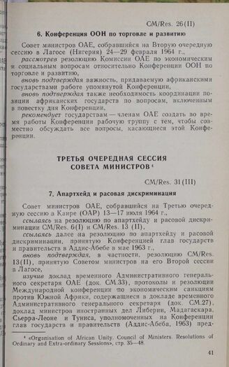 Третья очередная сессия Совета министров. CM/Res. 31(III). Апартхейд и расовая дискриминация. Каир, 13-17 июля 1964 г.