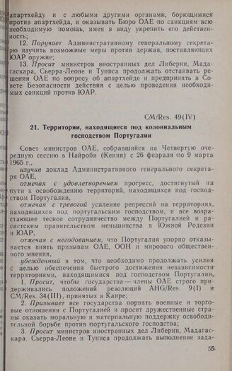 Четвертая очередная сессия Совета министров. CM/Res. 49 (IV). Территории, находящиеся под колониальным господством Португалии. Найроби, 26 февраля-9 марта 1965 г.