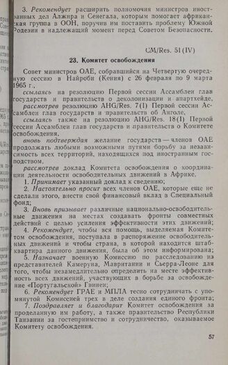 Четвертая очередная сессия Совета министров. CM/Res. 51 (IV). Комитет освобождения. Найроби, 26 февраля-9 марта 1965 г. // «Organisation of African Unity. Council of Ministers. Resolutions of Ordinary and Extra-ordinary Sessions», стр. 57-68.