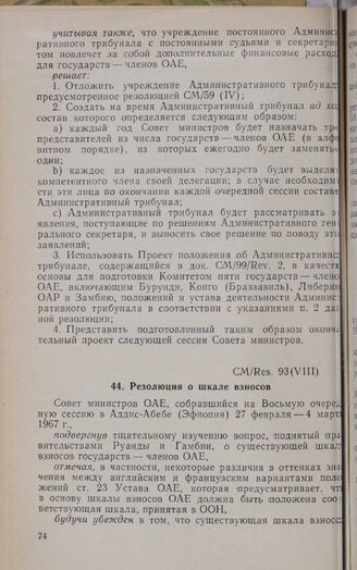 Восьмая очередная сессия Совета министров. CM/Res. 93 (VIII). Резолюция о шкале взносов. Аддис-Абеба, 27 февраля-4 марта 1967 г.