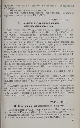 Девятая очередная сессия Совета министров. CM/Res. 113 (IX). Санитария и здравоохранение в Африке. Киншаса, 4-10 сентября 1967 г. // «OAU Secretariat. Resolutions adopted by the Council; of Ministers at Its Ninth Ordinary Session and approved by the Fourth Ordinary Session of the Assembly of Heads of State and Government», Addis Ababa, 1967.