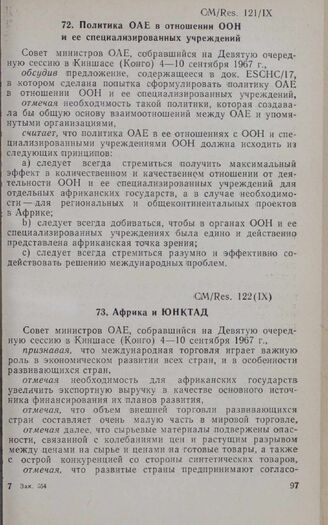 Девятая очередная сессия Совета министров. CM/Res. 121 (IX). Политика ОАЕ в отношении ООН и ее специализированных учреждений. Киншаса, 4-10 сентября 1967 г. // «OAU Secretariat. Resolutions adopted by the Council; of Ministers at Its Ninth Ordinary Session and approved by the Fourth Ordinary Session of the Assembly of Heads of State and Government», Addis Ababa, 1967.