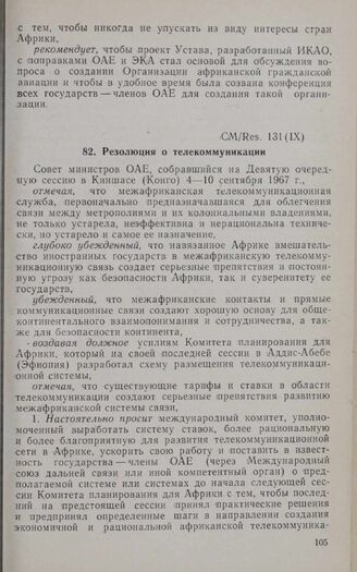 Девятая очередная сессия Совета министров. CM/Res. 131 (IX). Резолюция о телекоммуникации. Киншаса, 4-10 сентября 1967 г.
