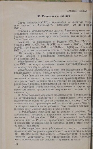 Десятая очередная сессия Совета министров. CM/Res. 135(Х). Резолюция о Родезии. Аддис-Абеба, 20-24 февраля 1968 г.