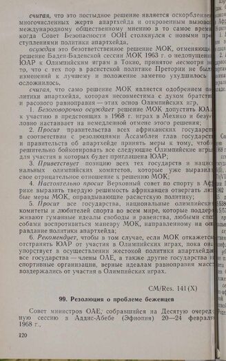 Десятая очередная сессия Совета министров. CM/Res. 141(Х). Резолюция о проблеме беженцев. Аддис-Абеба, 20-24 февраля 1968 г.