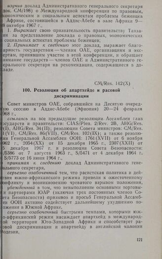 Десятая очередная сессия Совета министров. CM/Res. 142(Х). Резолюция об апартхейде и расовой дискриминации. Аддис-Абеба, 20-24 февраля 1968 г.
