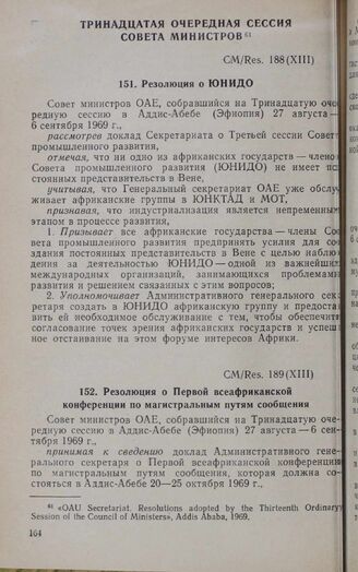 Тринадцатая очередная сессия Совета министров. CM/Res. 188 (XIII). Резолюция о ЮНИДО. Аддис-Абеба, 27 августа-6 сентября 1969 г.