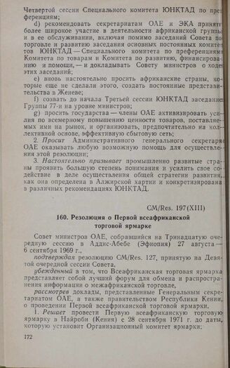 Тринадцатая очередная сессия Совета министров. CM/Res. 197 (XIII). Резолюция о Первой всеафриканской торговой ярмарке. Аддис-Абеба, 27 августа-6 сентября 1969 г. // «OAU Secretariat. Resolutions adopted by the Thirteenth Ordinary Session of the Council of Ministers», Addis Ababa, 1969.