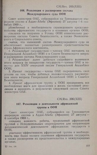 Тринадцатая очередная сессия Совета министров. CM/Res. 206 (XIII). Резолюция о деятельности африканской группы в ООН. Аддис-Абеба, 27 августа-6 сентября 1969 г. // «OAU Secretariat. Resolutions adopted by the Thirteenth Ordinary Session of the Council of Ministers», Addis Ababa, 1969.