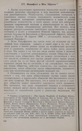 Манифест о Юге Африки. Лусака, 14-16 апреля 1969 г. // «The Lusaka Manifesto of Southern Africa», Government of the United Republic of Tanzania, Dar es Salam, 1969.