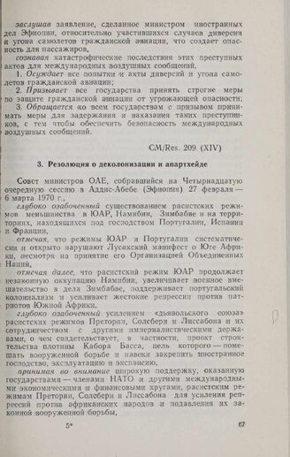 Четырнадцатая очередная сессия Совета министров. CM/Res. 209 (XIV). Резолюция о деколонизации и апартхейде. Аддис-Абеба, 27 февраля-6 марта 1970 г.