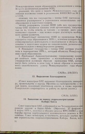 Четырнадцатая очередная сессия Совета министров. CM/St. З(ХІV). Заявление по поводу гидроэлектростанции Кабора Басса. Аддис-Абеба, 27 февраля-6 марта 1970 г.