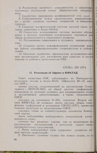 Пятнадцатая очередная сессия Совета министров. CM/Res. 220 (XV). Резолюция об Африке и ЮНКТАД. Аддис-Абеба, 24-31 августа 1970 г.